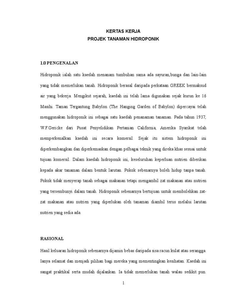 Kertas Kerja Projek Hidroponik Pdf